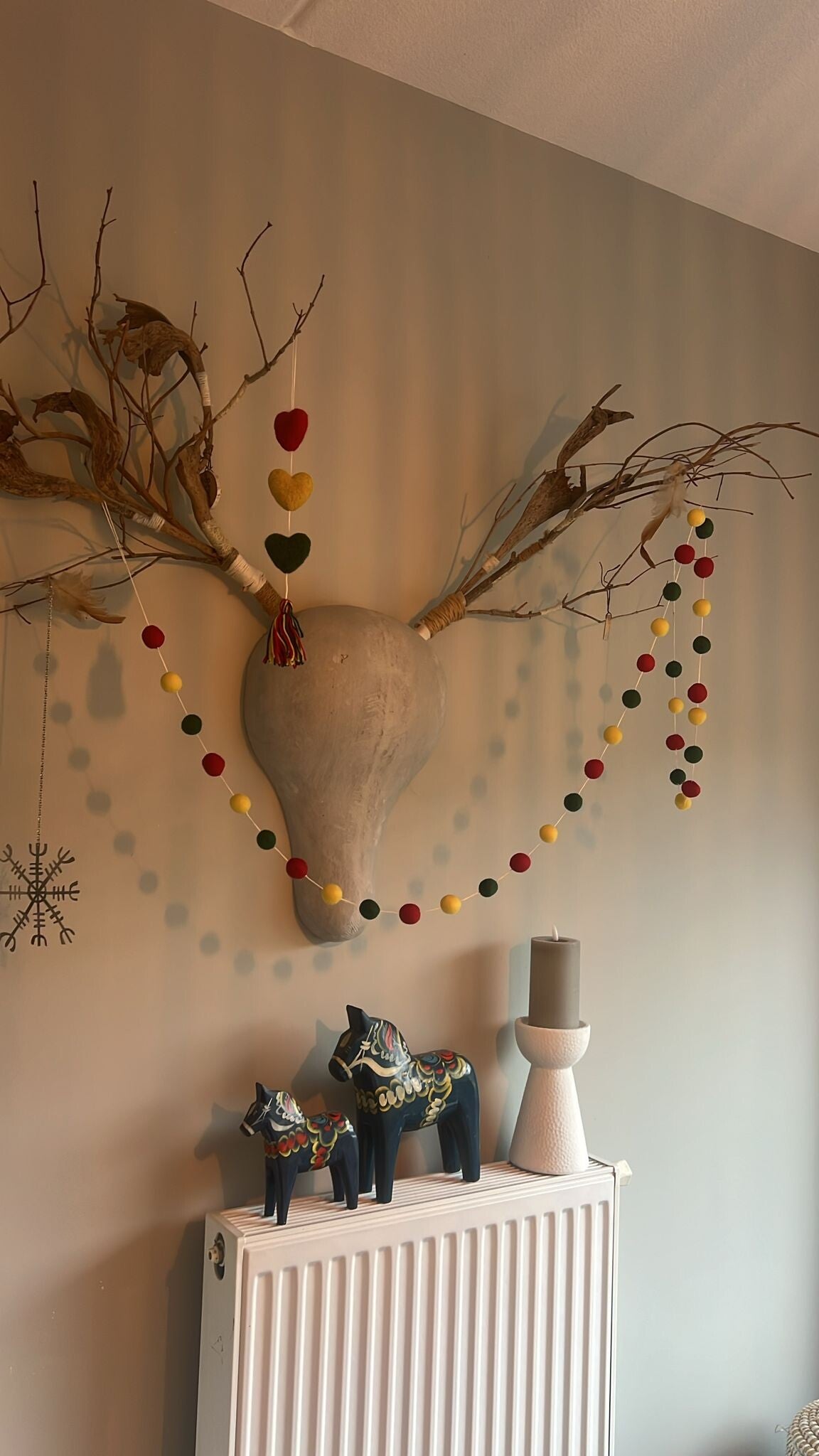 Vilten hartjes slinger in de carnavalskleuren rood - geel - groen. Met deze slinger aan een leuke krans of aan de muur kom je gelijk in de stemming voor deze drie geweldige dagen! Te combineren met onze leuke bolletjes slinger.
